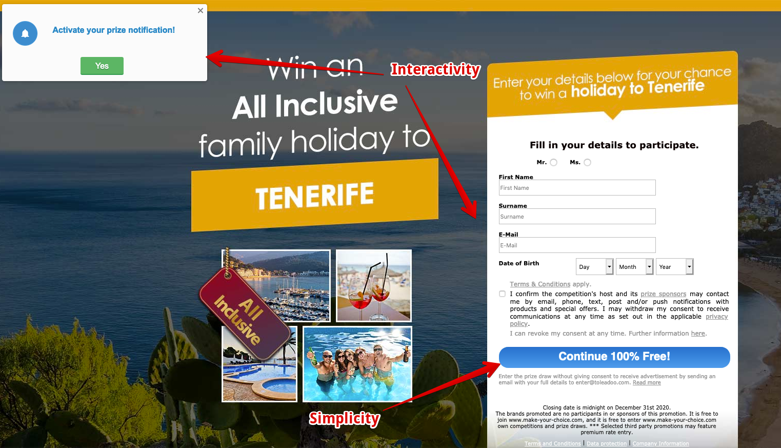 Simple entry sweepstakes require filling out a basic form with name and email.